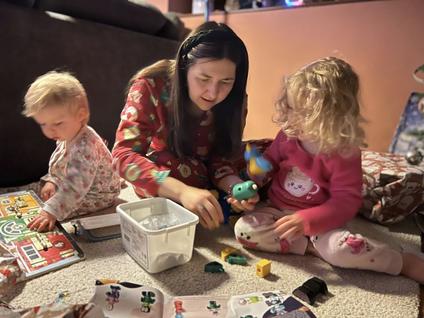 Santa's been and left us lots of presents And mummy can play with our toys as well