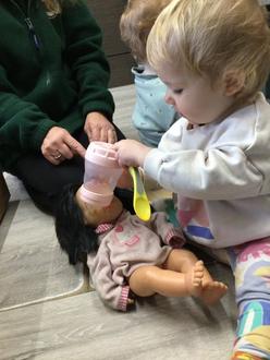 Feeding time for dolly No! It's not a mess of pottage A gleesome threesome